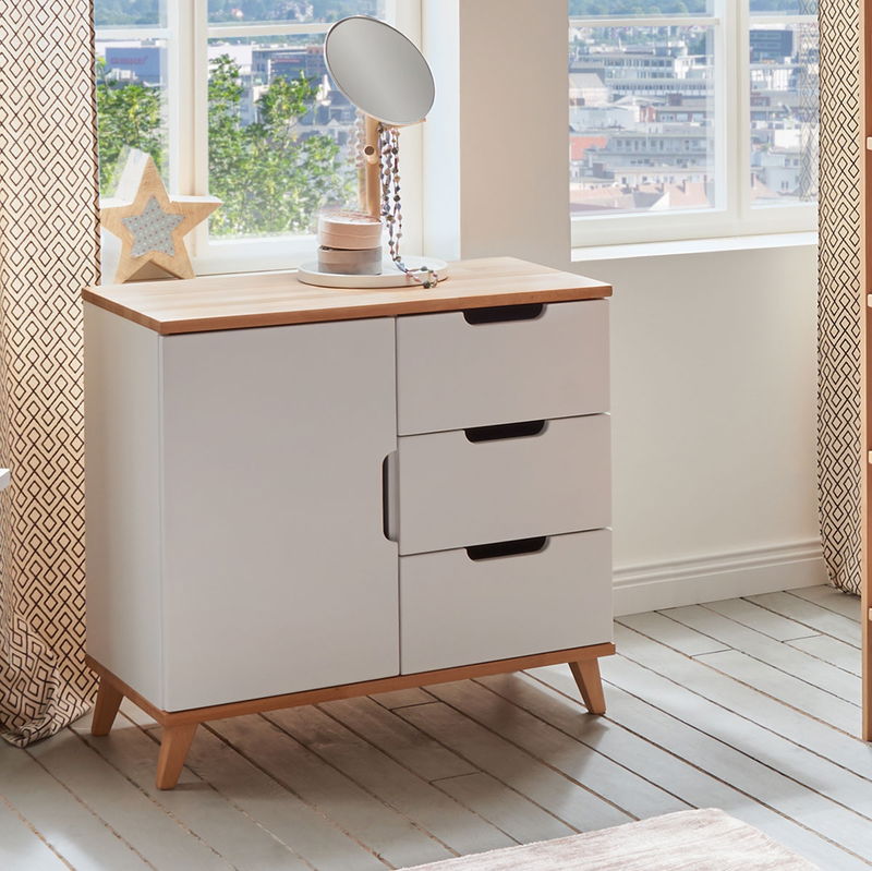 Infanscolor Kommode mit 3 Schubladen und 1 Tür in Buche/ weiß