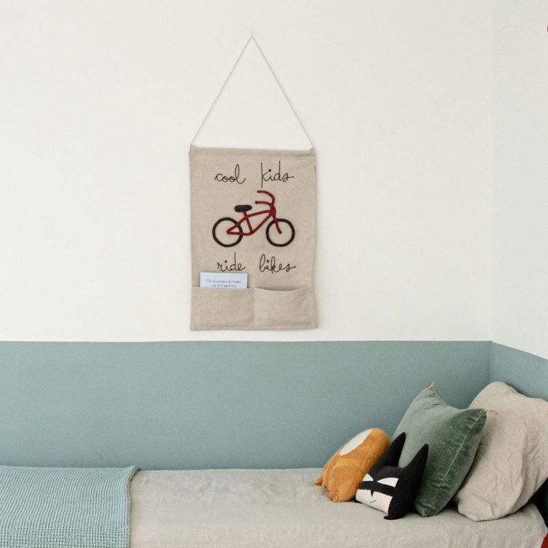 Artikelnr.: p528569385Lieferzeit: , Lieferung am 19. - 20. November 2025Dimension Stellmaß: 45 x 70 cmWandaufhänger aus natürlichem, ungefärbtem Canvas-Stoff mit der handgeschriebenen Botschaft "Cool Kids Ride Bikes" in Dunkelgrau und einem handgenähten Fahrrad aus Baumwollkordeln in Dunkelrot und Grau. Der Aufhänger hat zwei praktische Taschen, die zur Aufbewahrung genutzt werden können. Er wird mit einer gedrehten Baumwollschnur zum Aufhängen an der Wand geliefert.