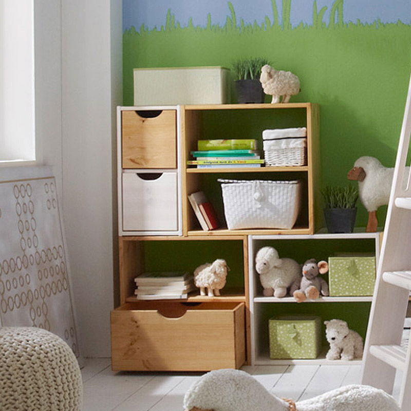 Für das Infans Kids Würfelsystem sind große und kleine Schubladen erhältlich. Ein kleiner Schubkasten passt genau in eine Ebene eines kleinen Würfels. Es passen auch zwei kleine Schubkästen in eine Ebene eines großen Würfels. Die Schubkästen haben eine Aussparung an der Front, die man als Griff nutzt. Jeder Schubkasten wird einfach so in den Würfel geschoben, es sind keine Laufschienen vorgesehen. Du kannst aus verschiedenen Farben wählen und diese auch gerne mixen. So entsteht Deine ganz persönliche Kombination.