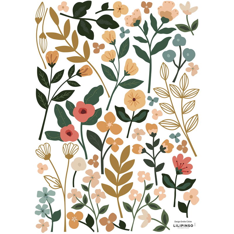 Mit den Farben und Blüten passen die Sticker wunderbar zu allem aus der Serie von Lilipinso. Die Sticker verzaubern nicht nur Wände, sondern auch Fenster, Spiegel und Möbel. Selbst mit kleinen Stickern kann man schon große Effekte erhalten. Fixiere den Aufkleber an der Wand, markiere die Stelle dann mit einem unauffälligen Stift an der Wand, an der der Sticker kleben soll. Damit keine Blasen entstehen, streich mit dem Finger sanft über den Sticker während du Sie von oben nach unten langsam anbringst. Für die Anwendung auf glatten Oberflächen.