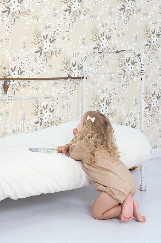 Eine wunderschöne Tapete fürs Kinderzimmer von Lilipinso mit stilvollem Design und einem schönen Blümchenmuster. Die Tapete ist leicht und schnell anzubringen und wenn man mit ihrer Position nicht zufrieden ist, kann man sie blitzschnell umkleben. Eignet sich auch wunderbar für das Schlaf- oder Wohnzimmer!