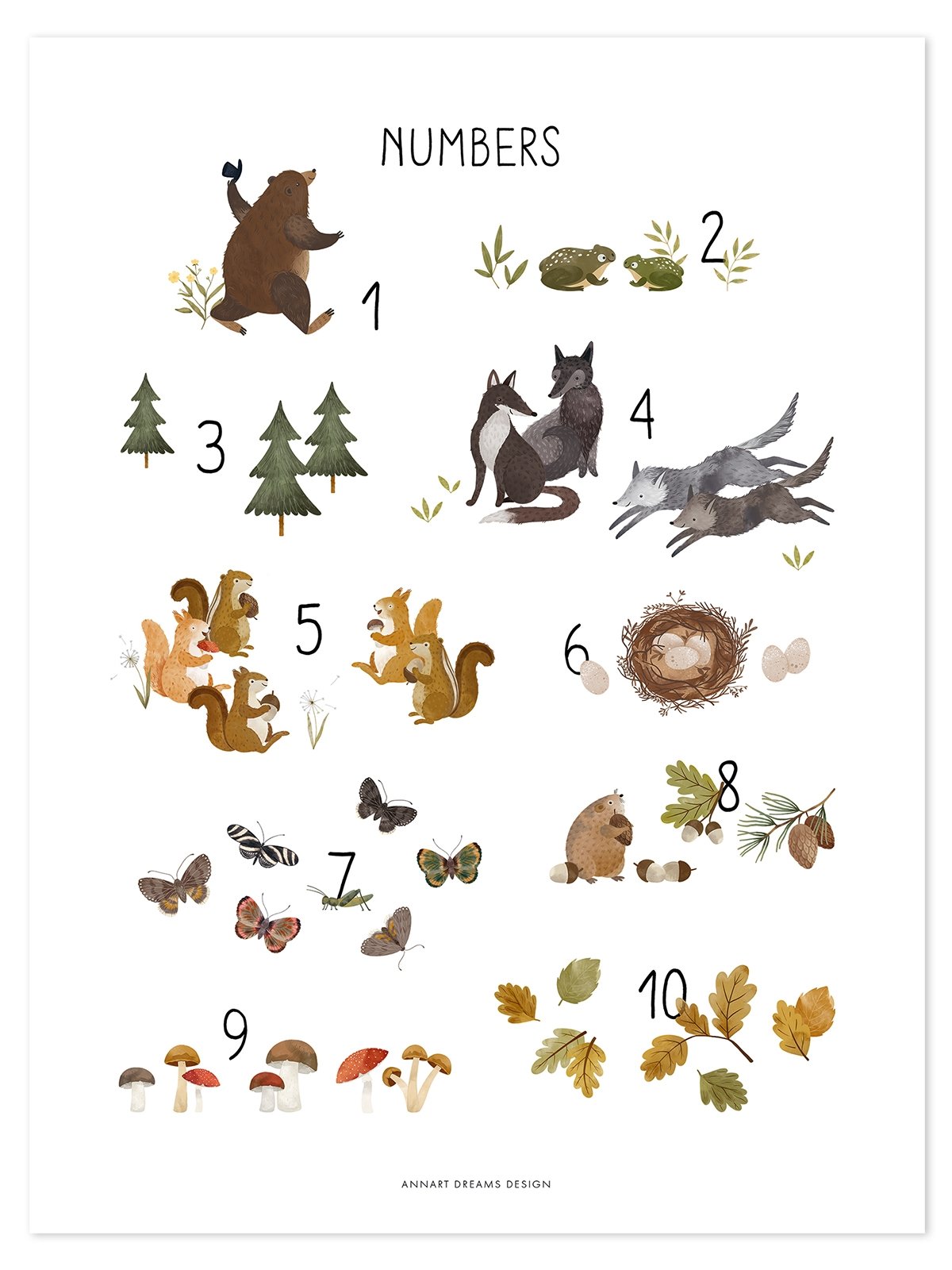 - Lilipinso Poster - Woodland Animals Numbers