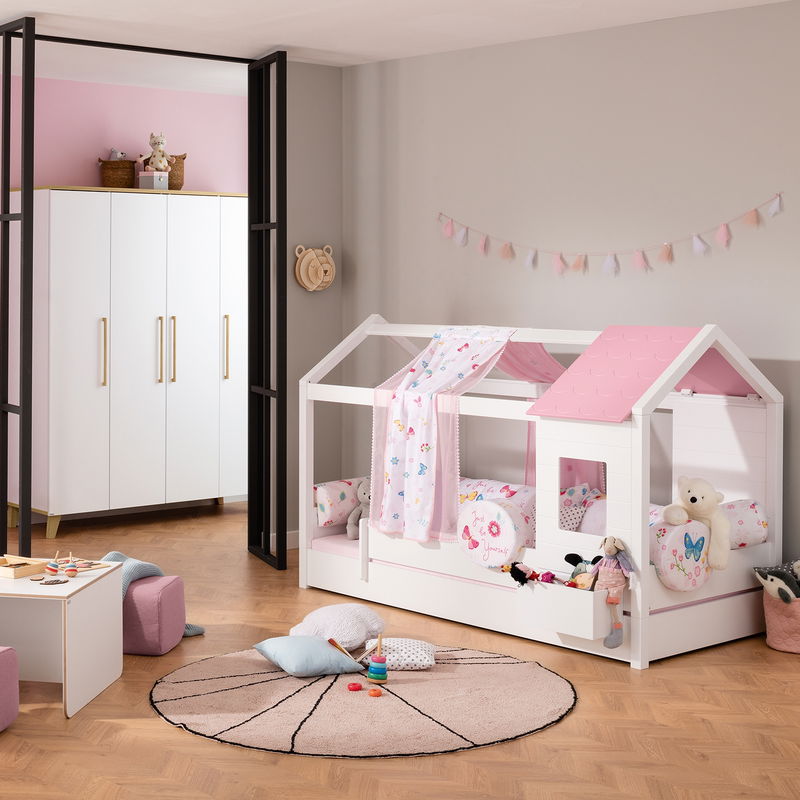 Das Tiny House Kuschelbett Plus ist das erste eigene Haus für die Kleinsten. In erster Linie ist es ein Bett, aber es kann noch für viel mehr als für einen guten Schlaf sorgen. Der Dachgiebel kann ganz nach eigenen Wünschen geschmückt werden oder mit den passenden Elementen von Paidi bestückt: farbige Dachschindeln, weiße Fenster- und Wandpaneele machen auf dem Kuschelbett ein richtiges Dach über dem Kopf.