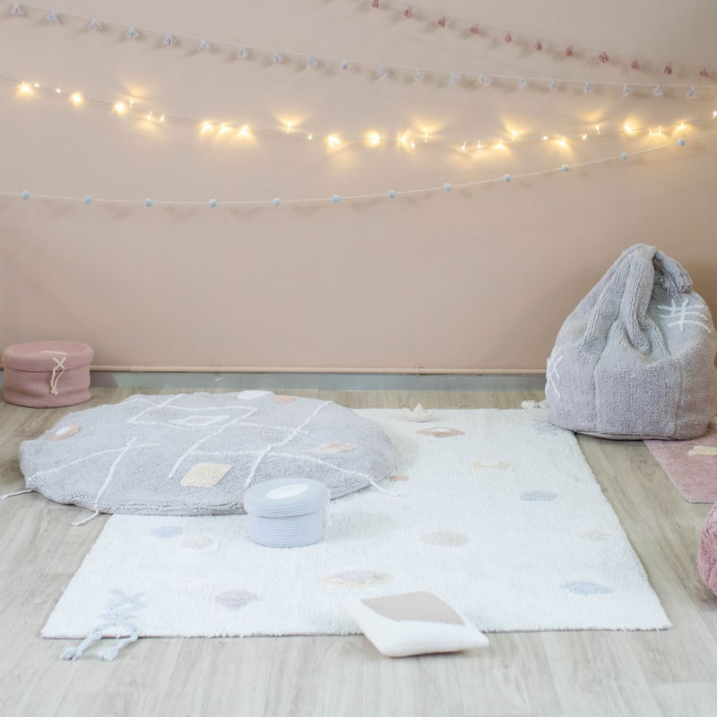 Die Pyjama Party Kollektion trumpft mit ganz neuen Ideen auf... gerade noch ein flauschiger Teppich, wird er dank der Füllung ganz fix zu einem super chilligen Sitzpuff. Hier lässt es sich gemütlich und bequem Sitzen oder Fletzen. Der warme Grauton mit dem dezenten Farbmuster passt in jedes Zimmer. Lorena Canals bietet mit seinen handgefertigten Produkten eine unbegrenzte Möglichkeit, sich ganz individuell einzurichten.