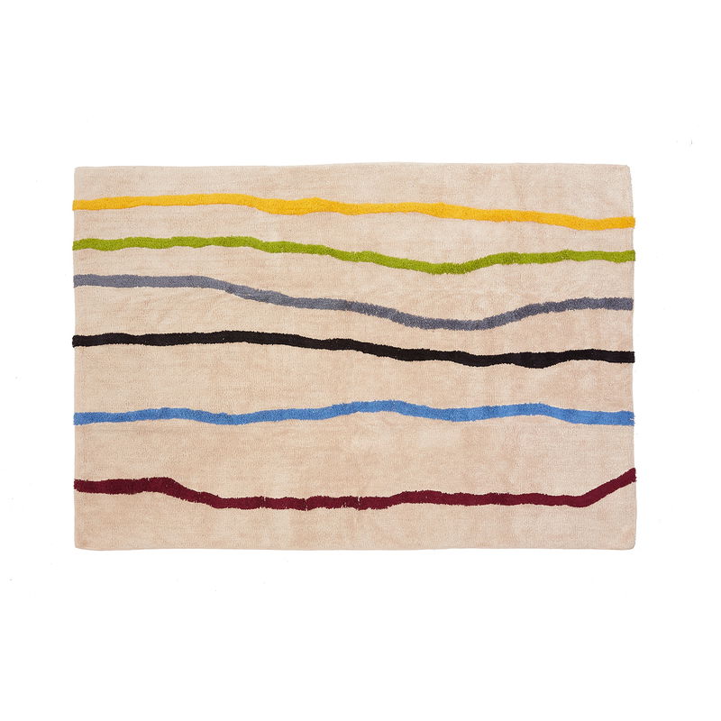 Dieser wunderschöne Teppich wird auch Dich begeistern. Auf naturfarbenem Hintergrund sind bunte Linien abgebildet und somit wird der Teppich zu einem Blickfang in jedem Zimmer. Er ist handgefertigt, strapazierfähig und sollte einmal ein Missgeschick passieren, kannst Du ihn bei maximal 30 °C einfach waschen.