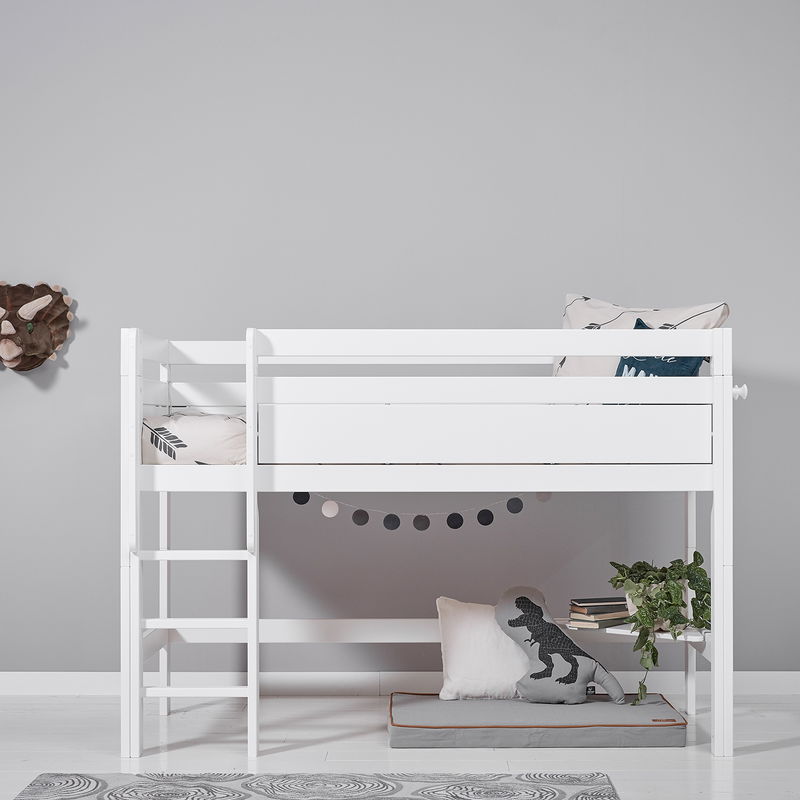 Lifetime Halbhohes Bett in deckend weiß mit Deluxe Lattenrost, gerade Leiter