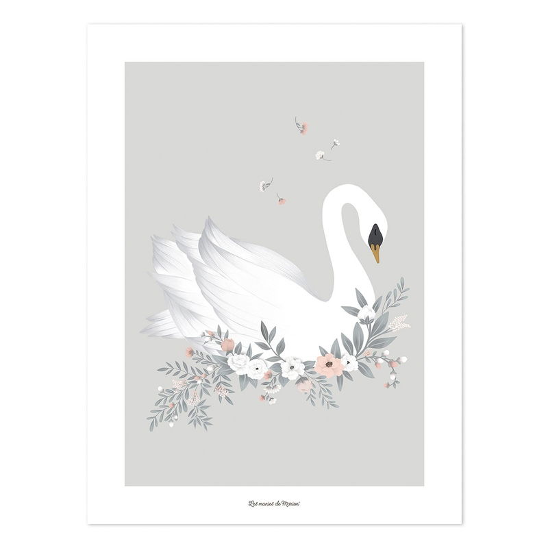 - Kinderposter mit Schwan-Motiv in Grau und Weiß