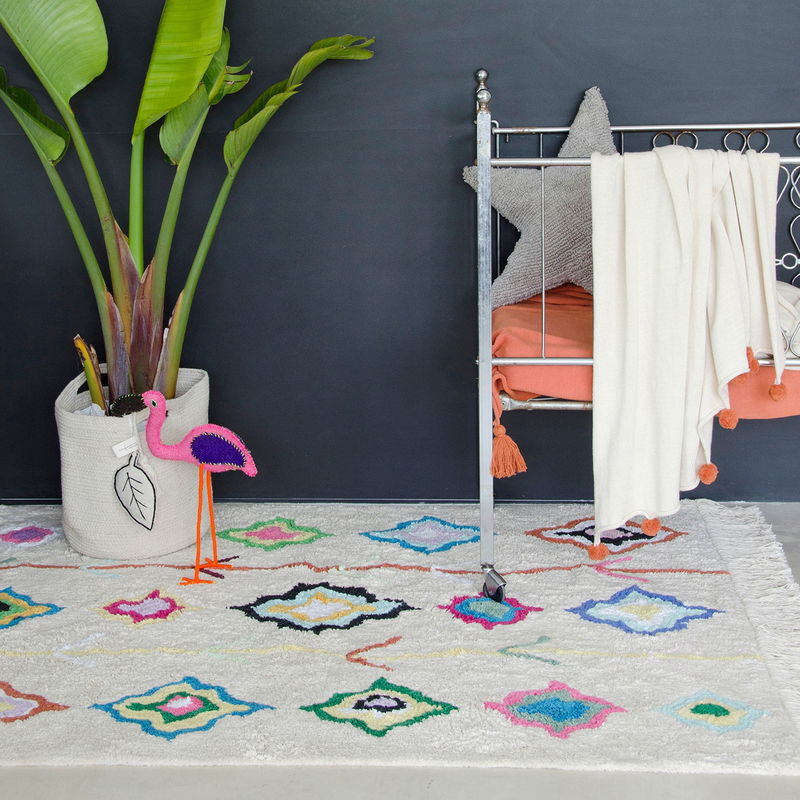 Mit dem ausgefallenen Kaarol Design im marokkanischen Stil hat Lorena Canals einen farbenfrohen Teppich entworfen. Die dezenten Farbkombinationen zeigen Fröhlichkeit mit orientalischem Akzent. Den flauschigen Baumwollteppich mit seinen hübsche Fransen ziert jedes Zimmer und lädt zum Verweilen ein.