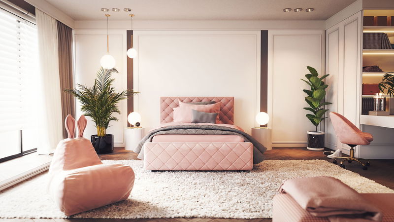Das Polsterbett Viana ist ein echter Hingucker in Deinem Schlafzimmer. Das hohe gepolsterte Kopfteil ist besonders auffällig und verleiht dem Zimmer Farbe und einen edlen Eindruck. Du kannst Dich beim Lesen ganz bequem am Kopfteil anlehnen, denn es gibt hier keine Ecken und Kanten. Auch die Bettseiten sind mit dem Velourstoff in Rosa bezogen. Dieser ist so kuschelig, dass Du am Liebsten den ganzen Tag im Bett sein möchtest. Der Lattenrost ist beim Kauf enthalten, er besteht aus 12 doppelten Federleisten und kann mittels einer Schlaufe am Fußende hochgeklappt werden, darunter befindet sich der Stauraum, den Du bis zu einer Höhe von ca.14 cm nutzen kannst. Der Innenbereich des Bettkastens und der Rücken des Kopfteiles sind mit einem dunkelgrauen Spannstoff bezogen. Der Bettkastenboden besteht aus stabilem Holz und ist sehr belastbar. Der Stoff lässt sich prima mit einem feuchten Lappen abwischen. (Abbildung ähnlich, Beispielvideo in Velour Blue 90 x 200cm)