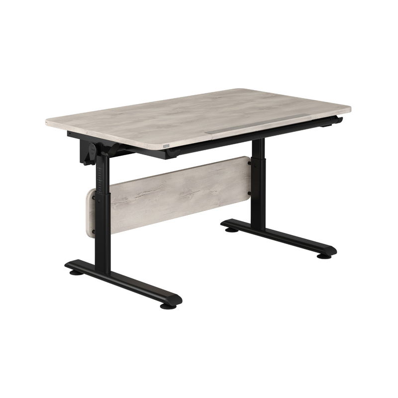 Der DIEGO Schreibtisch mit einer Breite von 120 cm bietet ausreichend Platz für Hausaufgaben, Mal- und Bastelarbeiten. Dein Kind kann an diesem Tisch entsprechend seiner Körpergröße ergonomisch korrekt sitzen. Die neigbare Platte, mit einer geräumigen Arbeitsfläche von 120 x 70 cm, bietet jede Menge Platz zum Arbeiten und ist bis zu 19° stufenlos neigbar. Die Platte wird durch drei hochwertige Rasterscheren verstellt, die die Platte wie schwebend in die richtige Position bringen. Diego besitzt neben dem modernen und designten Äußeren eine sehr stabile Konstruktion und ist mit hochwertigen Beschlägen und Materialien ausgestattet.