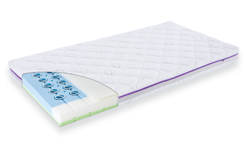 Bezogen ist die Kindermatratze mit dem einzigartigen Sleep Safety Multifunktionsbezug. Dieser praktische Matratzenbezug ist mit integriertem Nässeschutz versehen der sehr luftdurchlässig ist. Veredelt wurde dieser hochwertige Bezug mit Ölessenzen von Lavendel und Melisse. Versteppt mit Wash-Vlies ergibt sich eine kuschelige Liegefläche für Dein Baby. Seitlich ist der Bezug mit einem Ventilationsstoff versehen der extrem luftdurchlässig ist. Die Matratze kann solange genutzt werden bis Dein Kind aus dem Babybett herauswächst und in ein größeres Bett umzieht (mit ca. 4 Jahren, bzw. mit ca. 25 kg). Die Matratze ist geeignet für Allergiker.