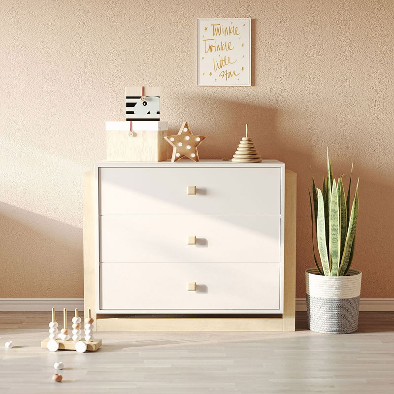 Die geräumige Wickelkommode von Nature Kid bietet 3 große Stauräume für gefaltete Klamotten & Wickelzubehör, der Wickelaufsatz bietet besonders viel Platz und ist stabil mit der Kommode verbunden. Die Griffe sind aus massiver Kiefer und spiegeln sich in den anderen Produkten des Serie wider Das Design passt auch generell zu allen Möbeln in Kiefer / Weiß Optik von Nature Kid. Zur Sicherheit: Das schwebende Design der Möbel gibt das Gefühl von Leichtigkeit, dennoch sind die Möbel dank der natürlichen Elemente sehr stabil. Unser Holz aus massiver Kiefer ist FSC-zertifiziert. Der Lack ist natürlich für Kinder geeignet und wurde dementsprechend geprüft.